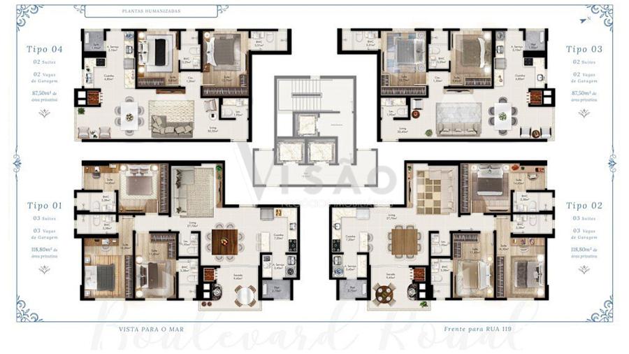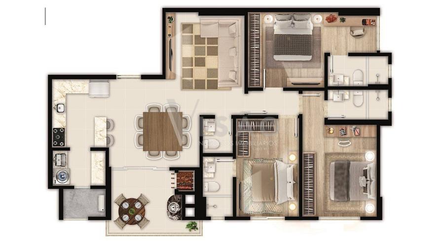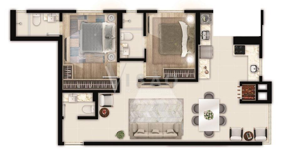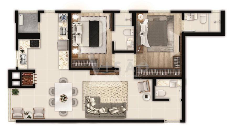• Piso porcelanato polido na área social e Vinílico nos dormitórios.